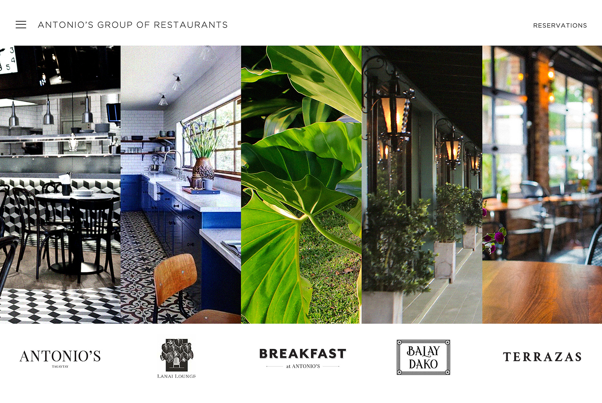 The challenge was to revamp their existing site into a new one which would house all of their restaurants: Antonio’s Tagaytay, Lanai Lounge, Breakfast at Antonio’s, Balay Dako, and Terraza Bar & Grille. The aim was to also showcase what each establishment was offering and to make it accessible for customers to book a reservation.